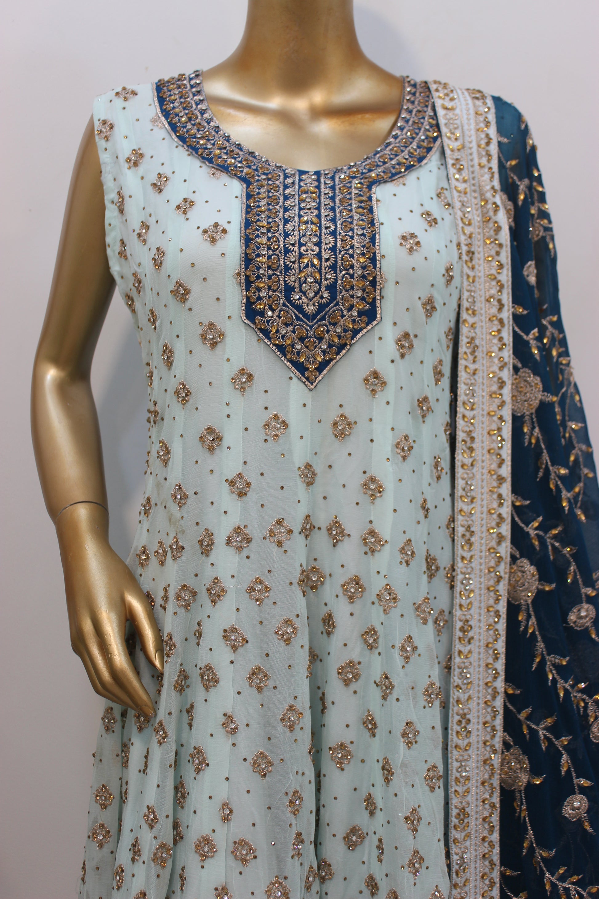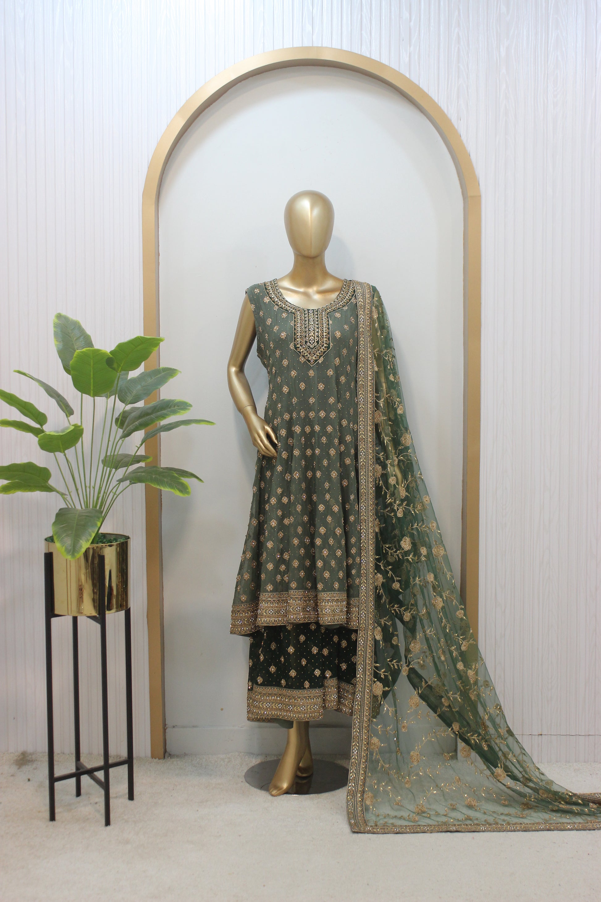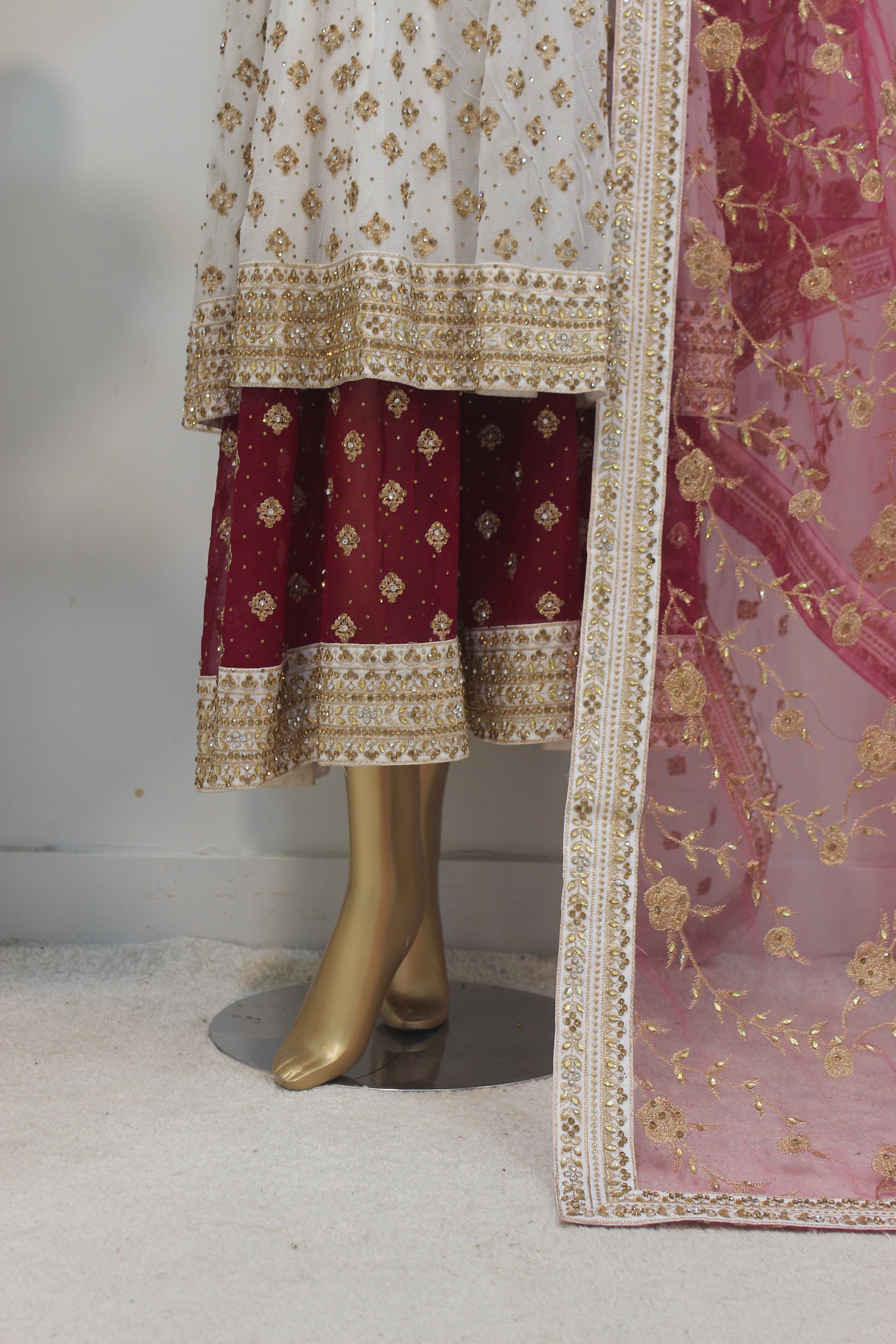 A heavily embroidered net dupatta (2.5 yards) completes the look with an ethereal touch – light, elegant, and rich in detail.