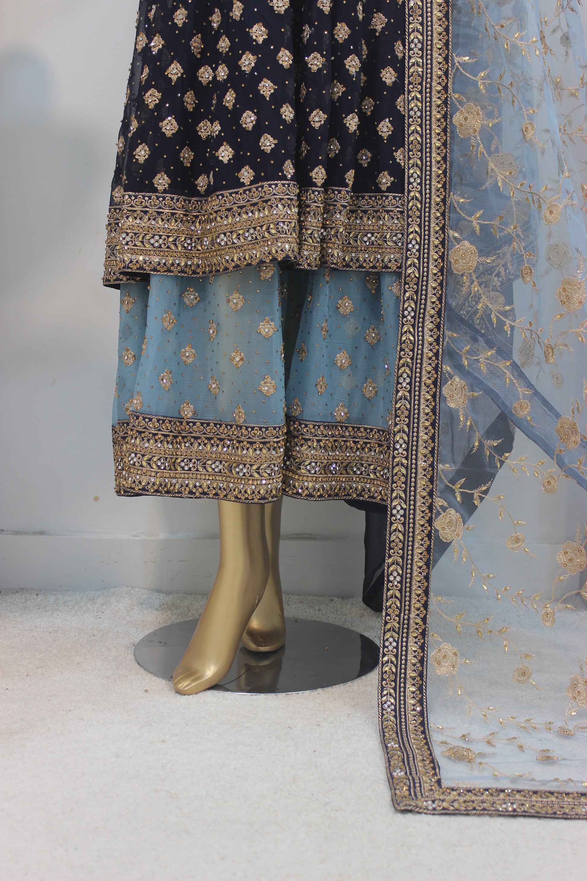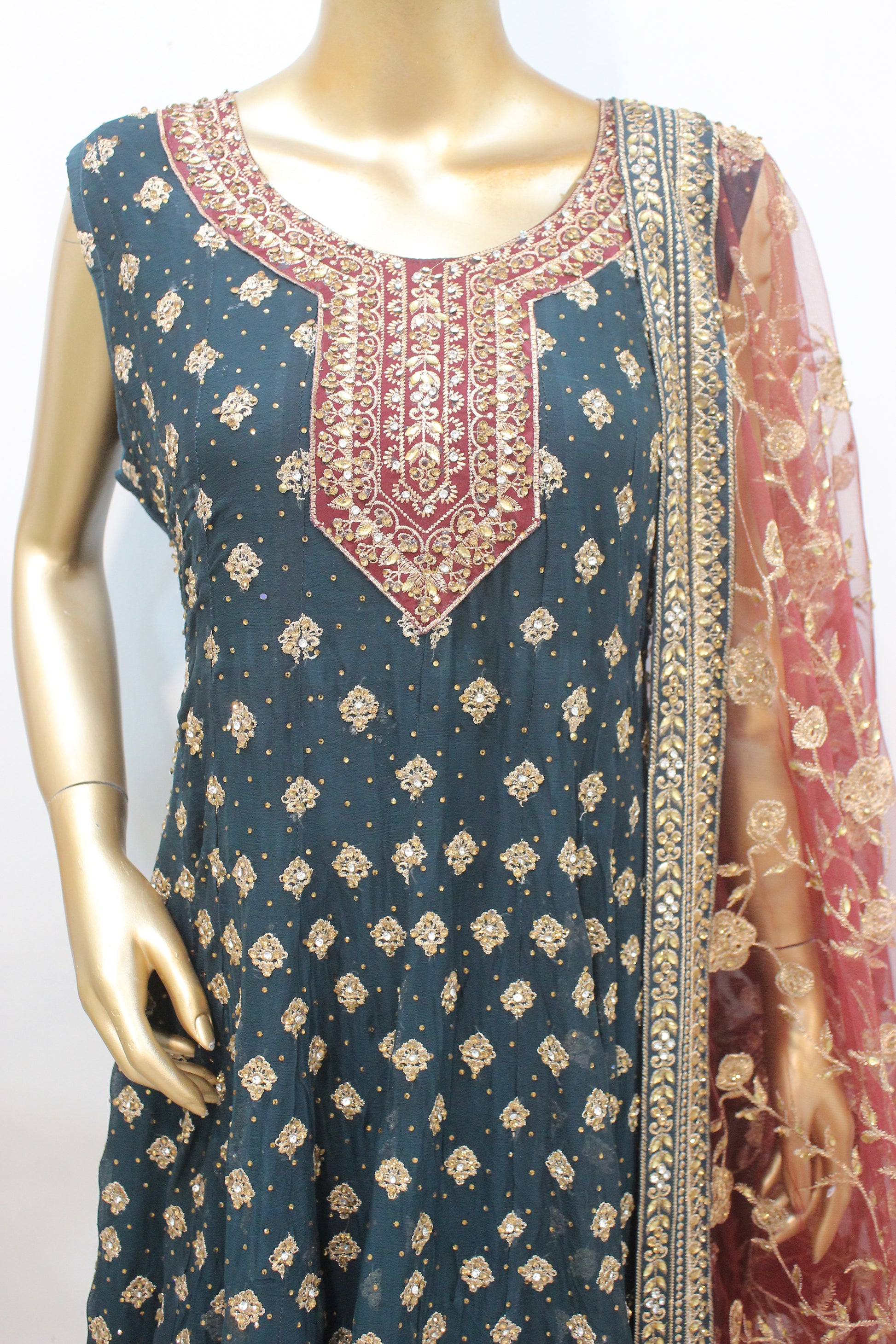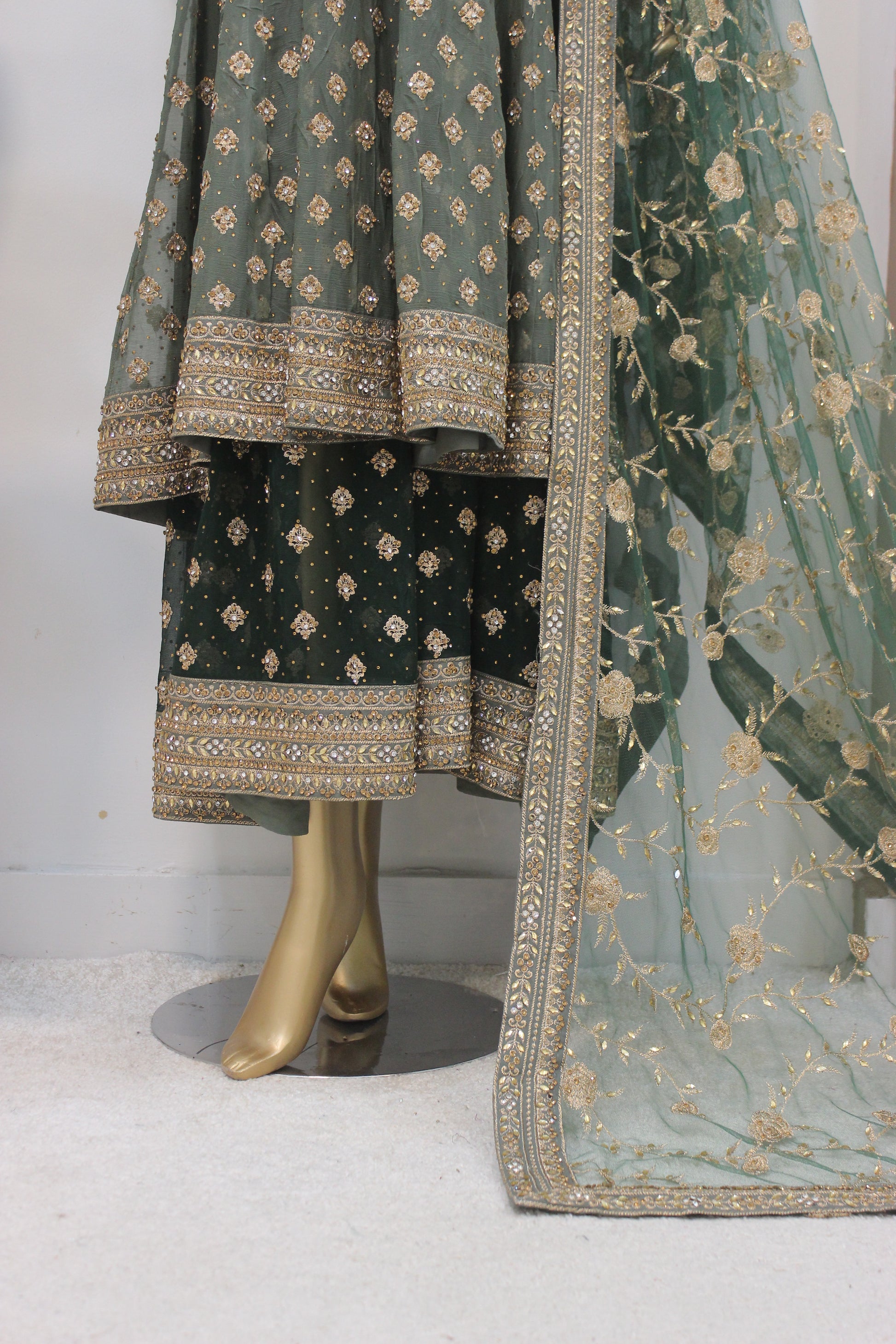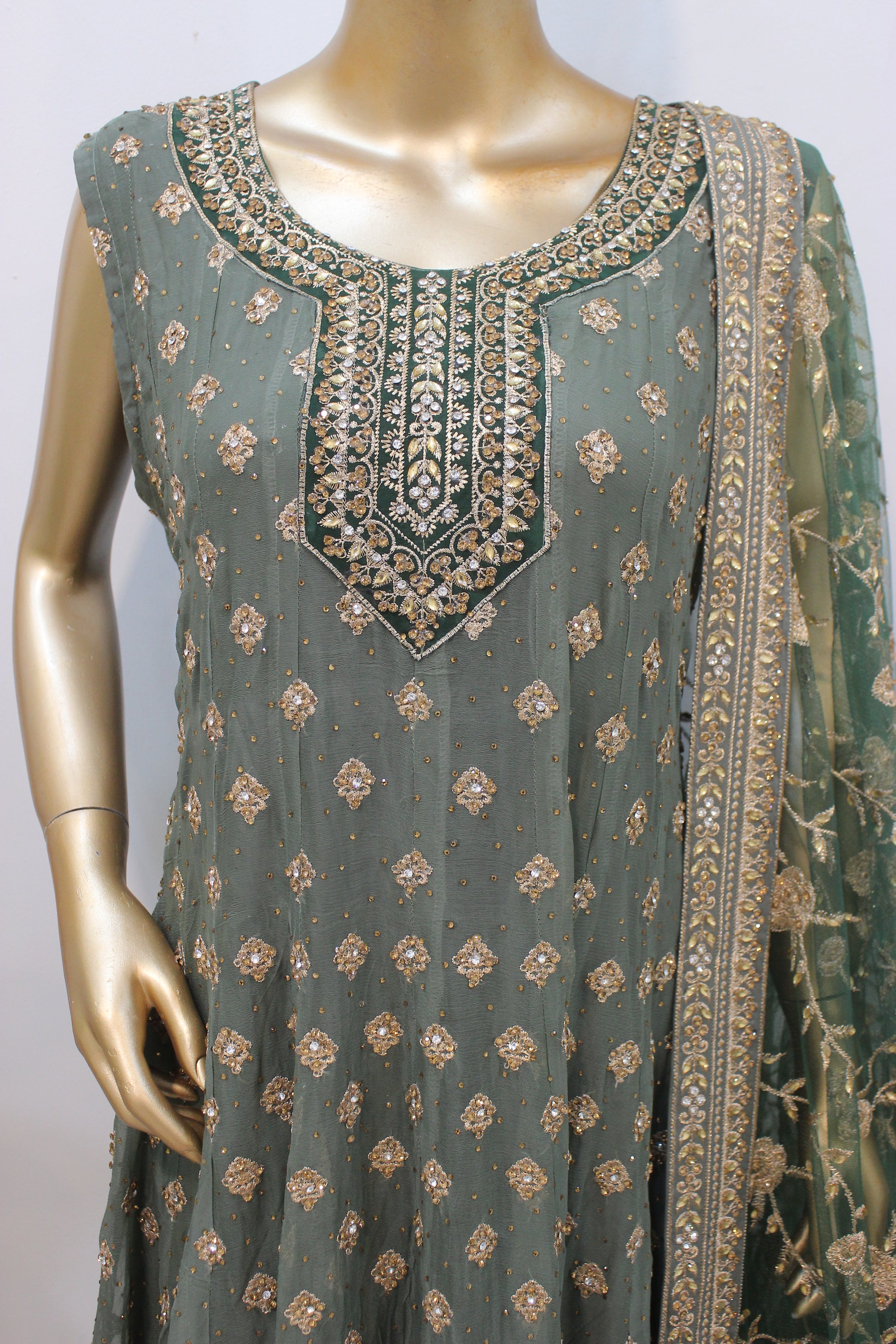A heavily embroidered net dupatta (2.5 yards) completes the look with an ethereal touch – light, elegant, and rich in detail.