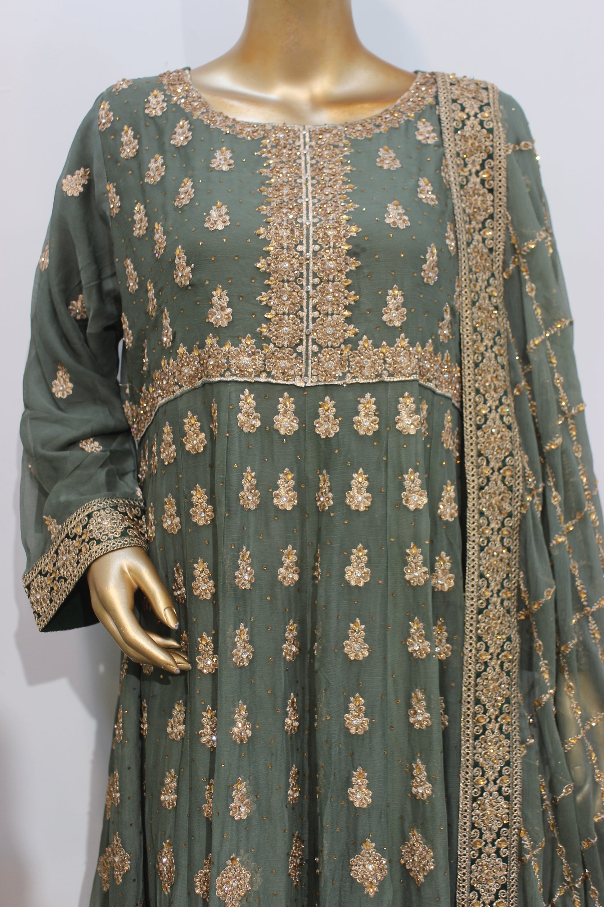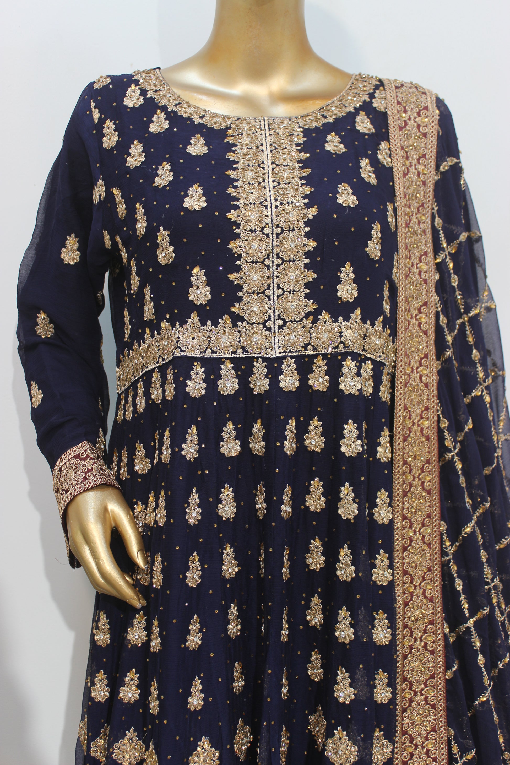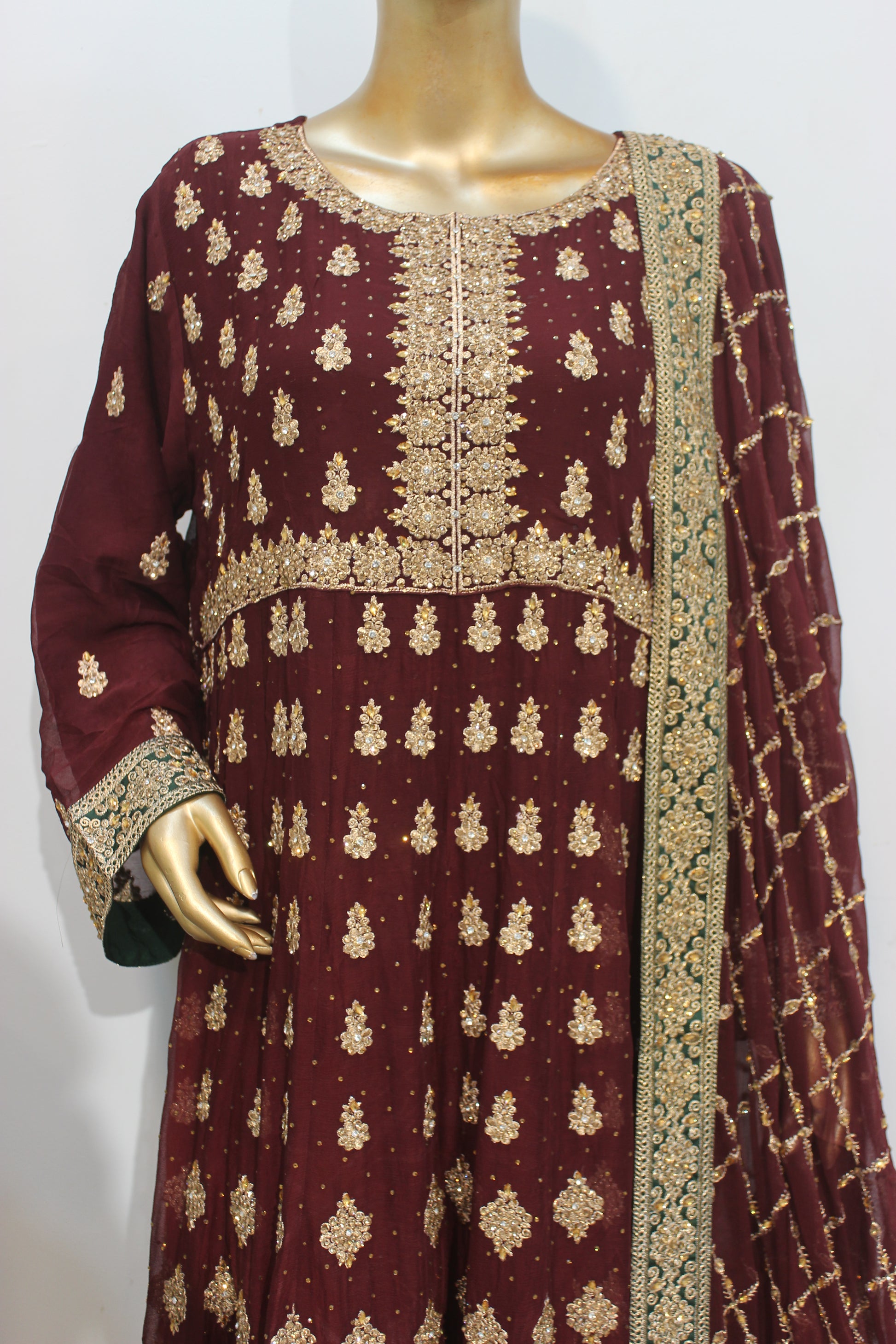 Dupatta: Fully zari embroidered net with silk border โ stitched
