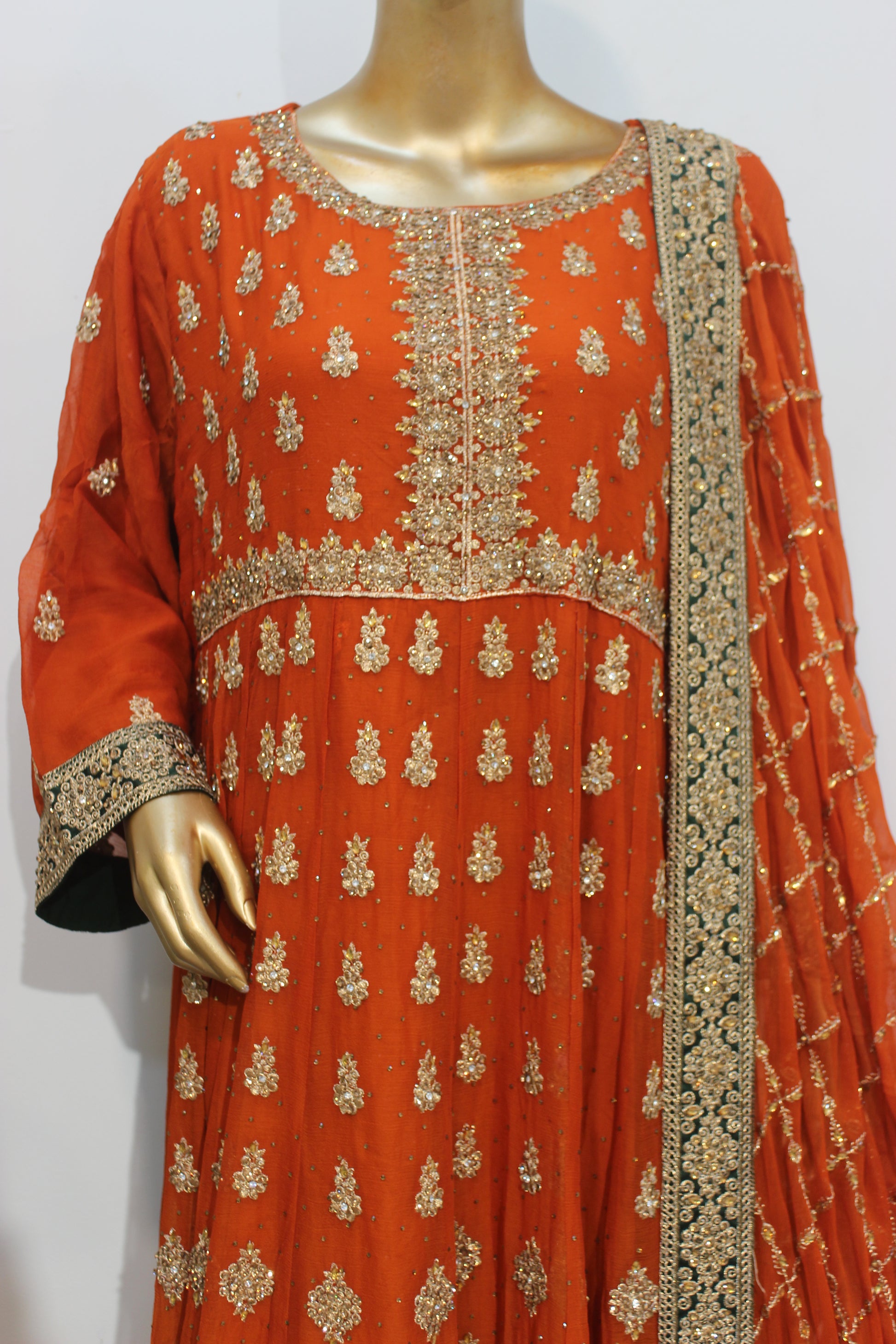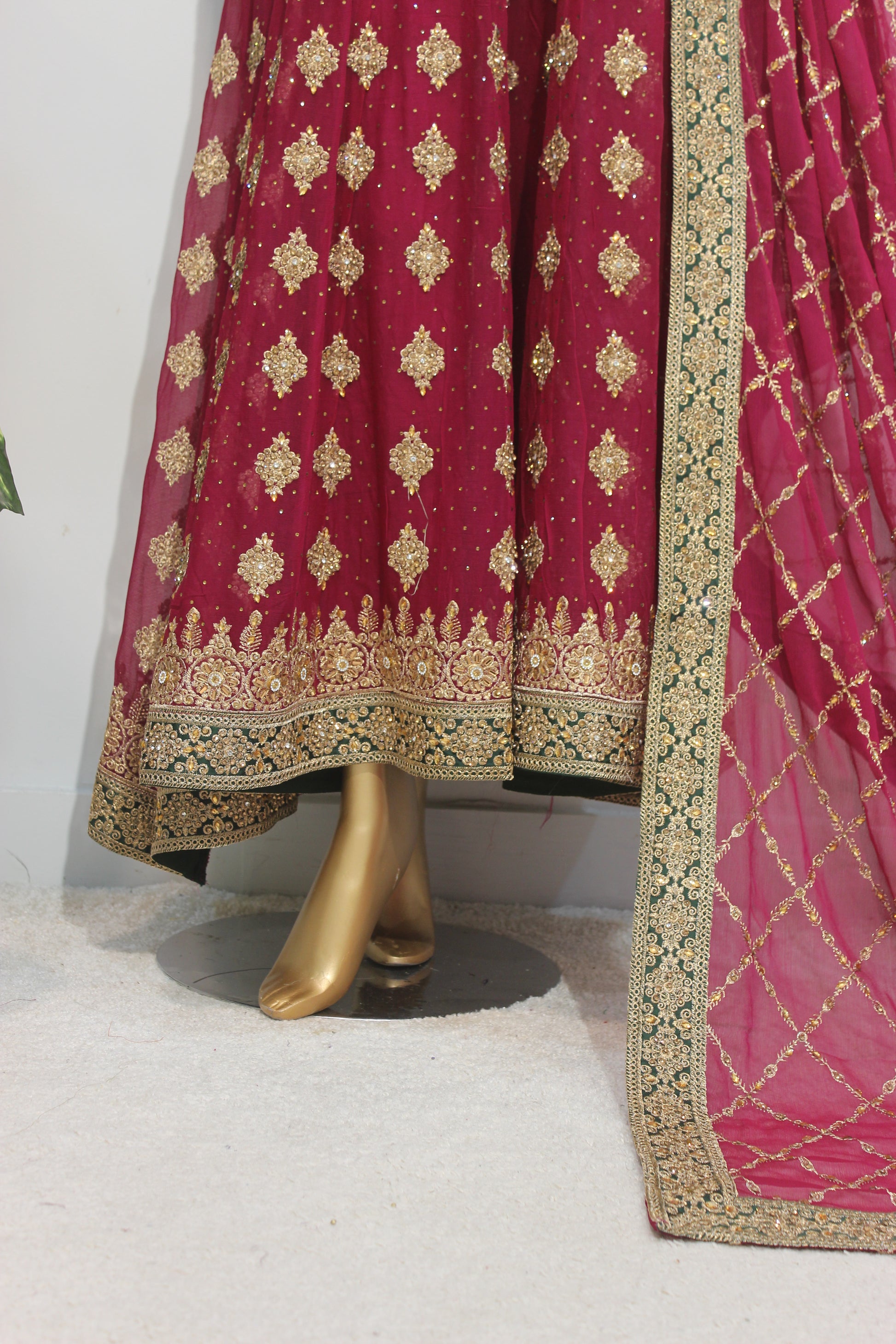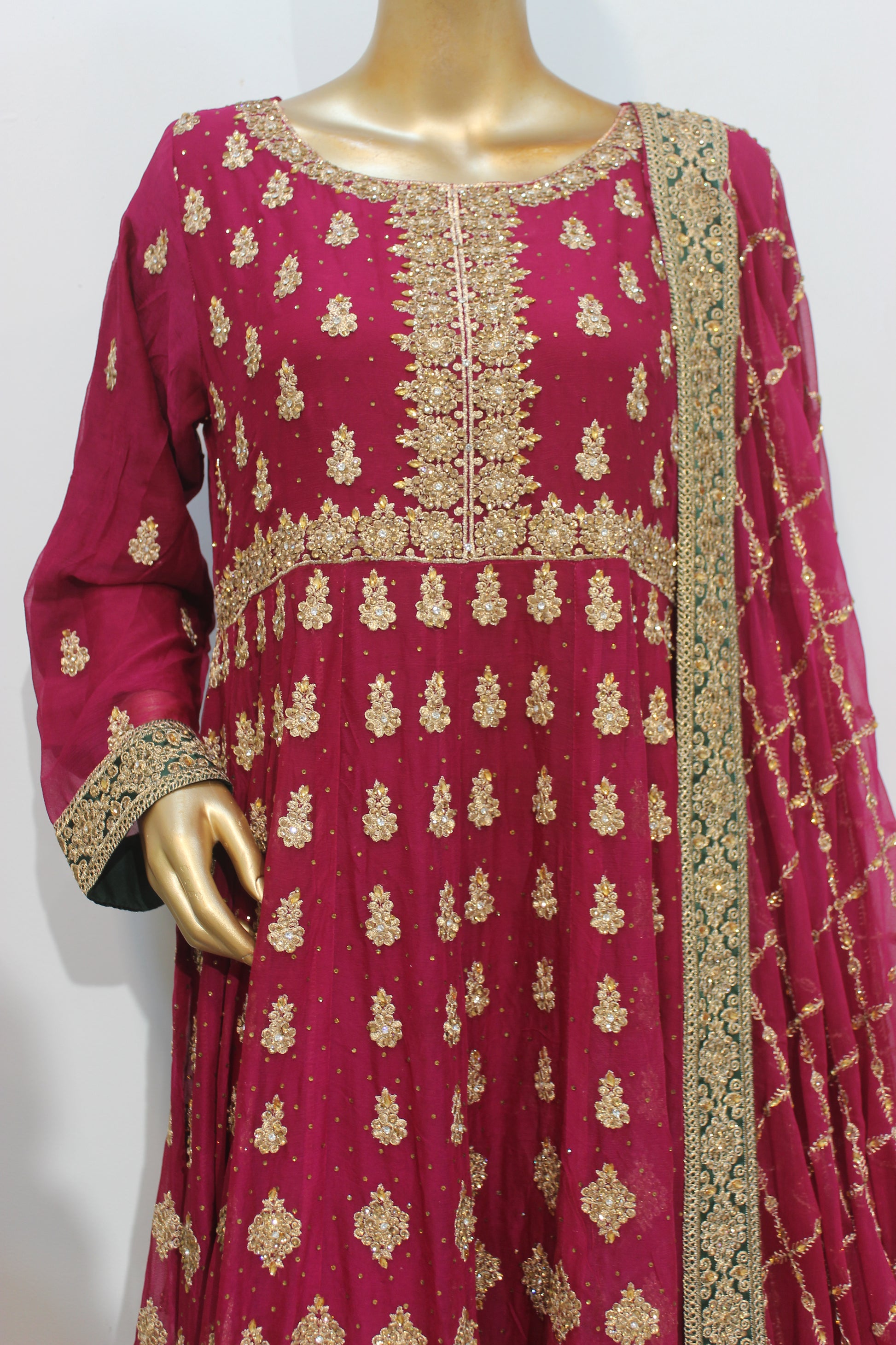 Dupatta: Fully zari embroidered net with silk border โ stitched